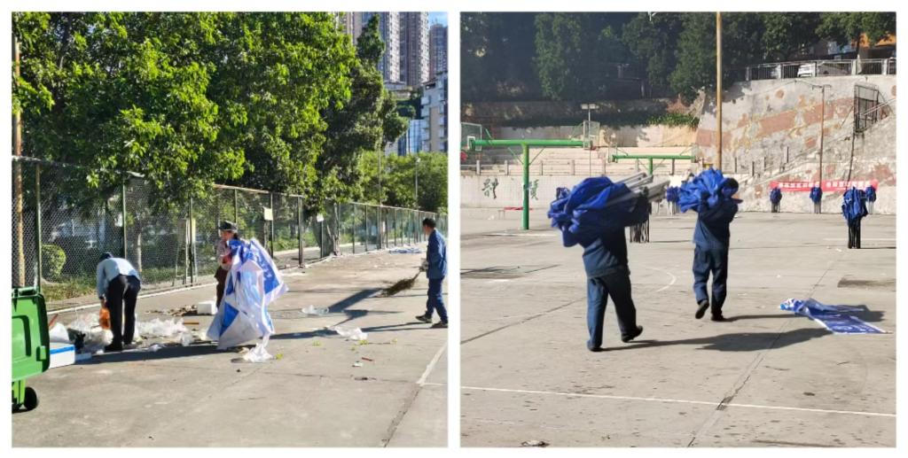 活动结束后,为不影响学校正常的教学秩序,公司在最短时间内恢复了活动场地。安全拆除专线、仔细收拢帐篷、协助归还物资,保洁团队还采用专业化清洁设备,对活动区域的油渍进行了深度清洗。