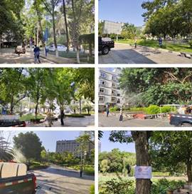 近段时间以来,为抓住暑期绿化苗木病虫害消杀的有利时机,公司环境绿化队按照暑期工作计划集中对全校行道树、花灌木喷洒农药除虫,确保绿化苗木生长良好,控制病虫害的滋生和蔓延。同时,对出现病虫害的树木进行必要的修剪,对死亡、缺损的草坪进行排查,做好补植工作。