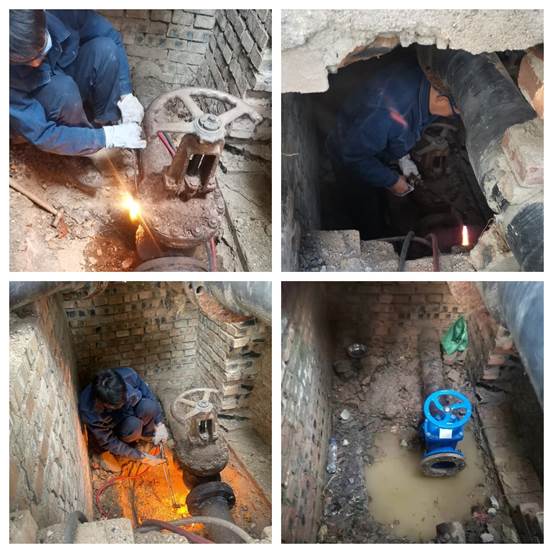 2月2日,公司协同后勤管理处开展思源坡高位供水池检查工作时发现供水池排水阀门锈死,管道严重堵塞,我公司遂立即组织人员对管道及阀门进行了维修更换,同时将新发现的故障点做了妥善处置,确保供水池及时排水开展卫生消杀工作。