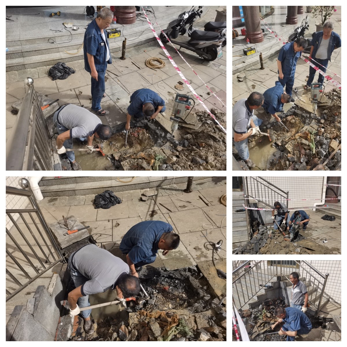 5月28日,公司维修服务中心在例行检查中发现总水表数据异常,经技术手段排查,最终确定系学校分析测试中心正大门右侧地下供水管锈蚀出现多处漏点所致,遂立即组织人力物力第一时间赶赴现场,制定维修方案,全力组织抢修。